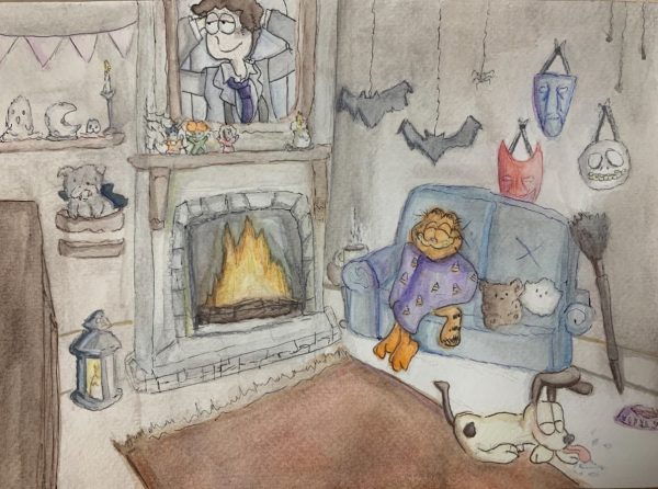 “Ultimately, I like the cartoon aspect to this and how sentimental it can make the viewers feel. I liked the artist’s interpretation of warmth consisting of quality time with yourself and the joys of hot chocolate. I liked the Easter eggs incorporated into the piece with the Sanderson Sisters from ‘Hocus Pocus’ and the Trick or Treaters from ‘The Nightmare before Christmas.’ This piece made me refer back to my childhood and the movies that characterized the nostalgia of Halloween,” staff writer Olivia Rivera (11) said.
